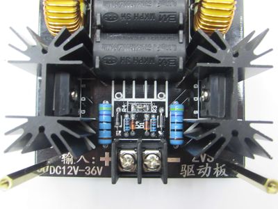 Такие конденсаторы предназначены для работы в высокочастотных схемах и применяются в частности в индукционных нагревателях, так, что это идеальный вариант для подобной схемы. На плате имеются латунные стойки для крепления кулера и индуктора, довольно удобное решение.