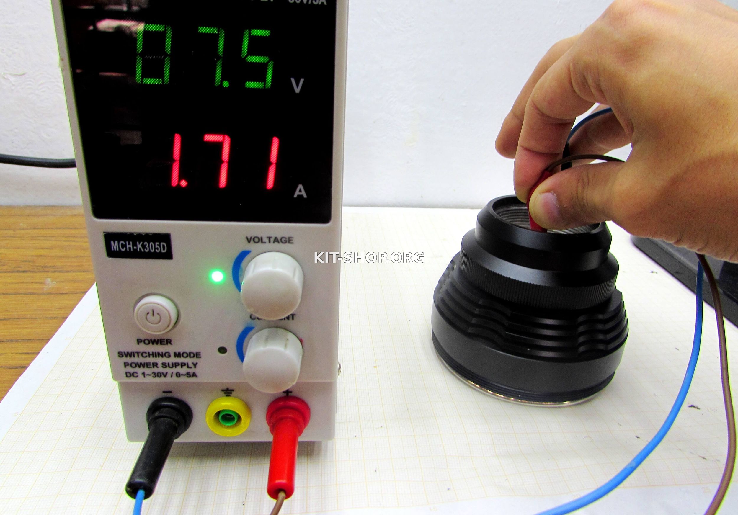 На лабораторном боке питания выставлено напряжение в районе 7,4Вольт