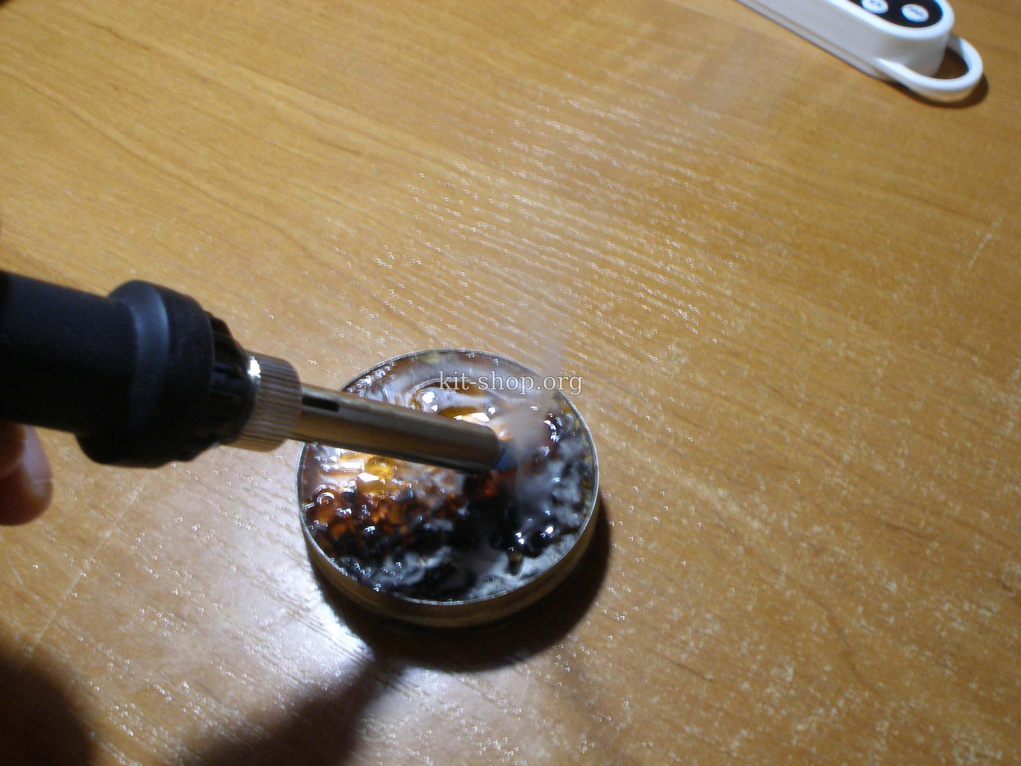 Теперь работы можно проводить, начиная от 25 Ватт (судя по температуре нагрева). В сети есть информация о том, что нагревательный элемент можно отпаять от платы и слегка его выдвинуть вперед – это якобы должно увеличить передачу тепла жалу паяльника.
