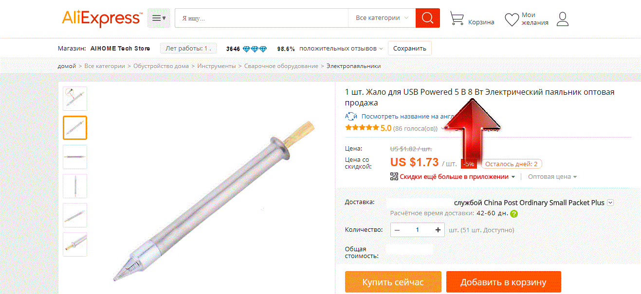 Из достоинств отмечу низкую стоимость, очень компактные размеры и вес, универсальность тоже не маловажный момент. такое жало подойдет и для юсб паяльника и для аккумуляторного.
