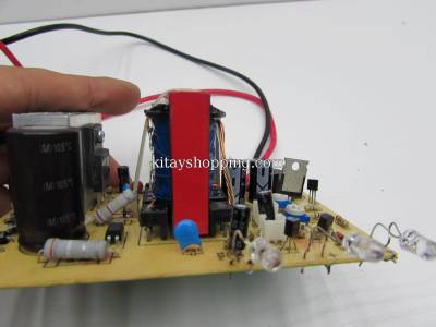 Сердцем является микросхема от компании Fairchild Semiconductor. Из себя представляет генератор импульсов и силовой транзистор в одном корпусе (отныне назовем ее драйвером). Такой драйвер (и его сородичи) нашел широкое применение в бп мониторах и так далее, в общем там, где нужно построить простой, надежный в работе ИИП с минимальными затратами. Встроенный силовой транзистор имеет граничное рабочее напряжение в 650 Вольт, так, что скачков микросхема не боится. На ней удобно организовать контроль выходного напряжения, что и сделали китайцы в данном образце.